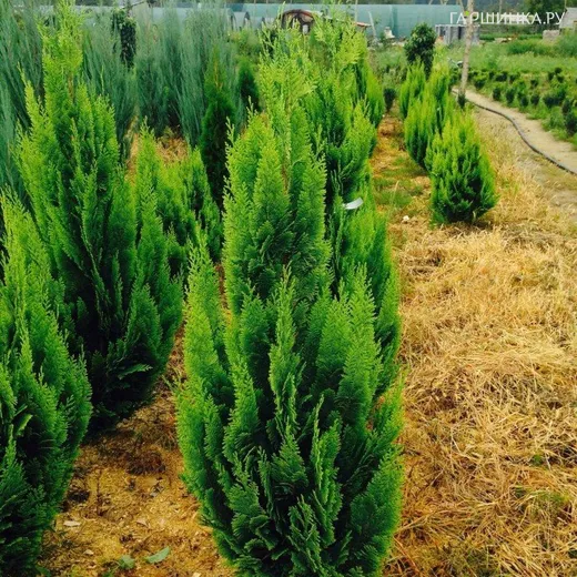 Кипарисовик Лавсона Алюмиголд - низкорослое медленнорастущее, вечнозеленое, хвойное дерево. Природный карлик легко переносит стрижки и обрезку. Растение во взрослом состоянии , при благоприятных условиях выращивания, вырастет до 2 м. Хвоя игольчато-чешуйчатая, окраска желто-золотистая, летом золотисто-зеленая, концы ветвей нитевидные. Крона колонновидная, узко-конусовидная, самоформируется, ветви жесткие, короткие. Шишки мелкие, шарообразные с сизым налетом.