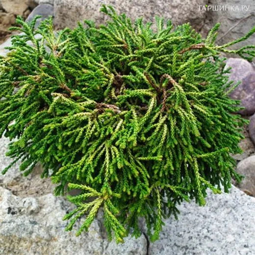 Кипарисовик тупой Гитте - низкорослое медленнорастущее, вечнозеленое, редкое хвойное растение. Природная форма легко переносит стрижки и обрезку. Растение во взрослом состоянии , при благоприятных условиях выращивания, вырастет до 0,5 м. Хвоя чешуйчатая, короткая, тупая, окраска зелено- желтая. Крона компактная, симметричная, самоформируется, ветви жесткие, полуприлегающие, прямые, густые.
