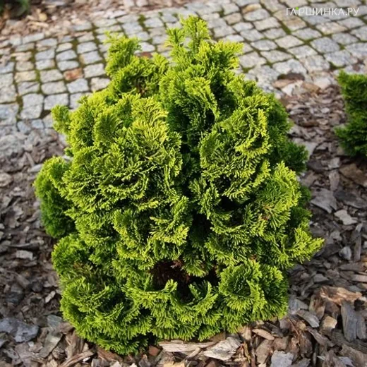 Кипарисовик тупой Аврора - очень привлекательный карликовый густой, хвойный кустарник с неравномерной, ширококонической формой кроны и яркой изумрудно-золотистой хвоей. Имеет ежегодный прирост до 5 см. Хвоинки мягкие, чешуевидные, плоские, изогнутые (волнистые), изумрудно-золотистого цвета. Морозоустойчив, при длительных сильных морозах может подмерзать. Необходимо защита от ранне- весеннего солнца.
