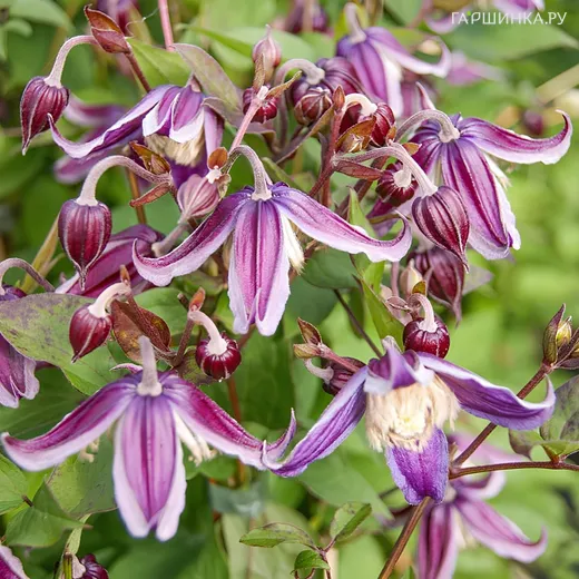 Клематис Ян Фопма мелкоцветковый (3) - Высота до 150 см, диаметр цветка 4-6 см. Цветки сиренево-фиолетовые с пурпурным оттенком в форме колокольчика. Не прихотлив, растет быстро, укрытия на зиму не требует. Имеет приятный аромат! Цветение - июль-сентябрь.