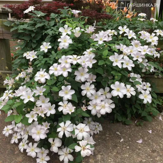 Клематис Хулдайн крупноцветковый (3) - это красивый и обильно цветущий сорт. Сильнорослая лиана с крупными жемчужно-белыми цветками и жёлтыми тычинками. Лучше всего растёт на солнечных местах и подходит для использования у садовых опор, оград и беседок.