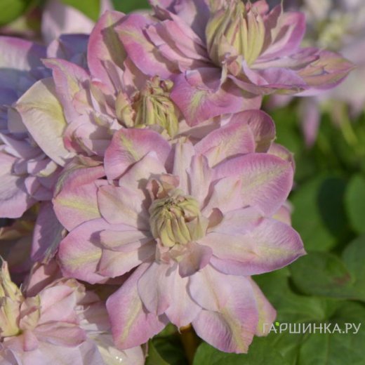 Клематис Инносент Блаш крупноцветковый (2) - многолетнее травянистое растение семейства Лютиковые, представляет собой лиану, усеянную крупными цветками. Ратение может виться по опоре или обвивать деревья и кустарники, прикрепляясь к ним листовыми черешками. Длина лианы – 2 метра. Срок жизни – до 40 лет. Темпы роста средние.