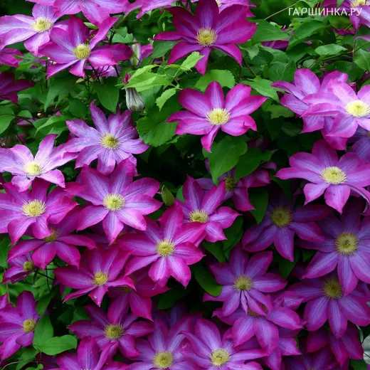 Клематис Какио (Пинк Шампань) крупноцветковый (2) - группа обрезки слабая (2), плети 2,5 метра, легко направляются. Цветки немахровые, темно-розовые, лепестки волнистые, по центру широкая лиловая полоска, 16 см, чашелистики заостренные, нити у тычинок светлые, пыльники желтые, пурпурные. Цветет на прошлогодних и текущих побегах, обильно и продолжительно. Зона зимостойкости 4.