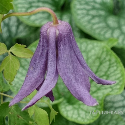 Клематис (Княжик) Виолет Лампион (1) - Цветки диаметром 8-12, колокольчатые. Лепестки фиолетовые. Цветение в мае-июне. С июня до осени куст украшают причудливые пушистые семенные головки. Лиана высотой 200-250 см. Зона 4 (до -29ºС).