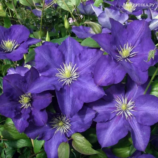 Клематис Леди Бетти Балфор крупноцветковый (3) - Сильно растущий сорт с темно-сине-фиолетовыми цветками, появляющимися в конце лета – с июля по сентябрь. Он идеально подходит для посадки возле беседок или высоких опор. Цветки диаметром 10-16 см, тёмно-голубовато-пурпурные с кремово-жёлтыми тычинками. Цветёт в середине июля-сентябре, более обильно на солнечных местах.
