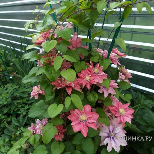 Клематис Литл Мермейд крупноцветковый (2) - это сорт с нежно-розовыми цветками, украшенными белой полоской по середине лепестков. Цветение обильное, особенно выигрышно смотрится при посадке на темном фоне. Период цветения длится с мая по июнь и с августа по сентябрь. Высота растения достигает 2-3 метра, а диаметр цветка составляет 14-18 см. Зона зимостойкости: 4 (-35 °С).