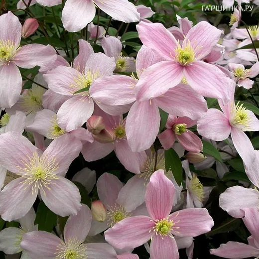 Клематис монтана Рубенс (1) - быстрорастущая древовидная листопадная лиана, достигающая длины 8 м. Побеги имеют пурпурную окраску, крупные листья яйцевидные, зубчатые, бронзово-зеленые. Цветы размером до 5 см, розово-красные при распускании и светлеющие со временем, собраны в пазушных пучках по 4-6 штук. Обильное цветение наблюдается на прошлогодних побегах в течение мая-июля. В осенней обрезке растение не нуждается. Ломонос сорта Рубенс не только красив, он обладает тонким ванильным ароматом.