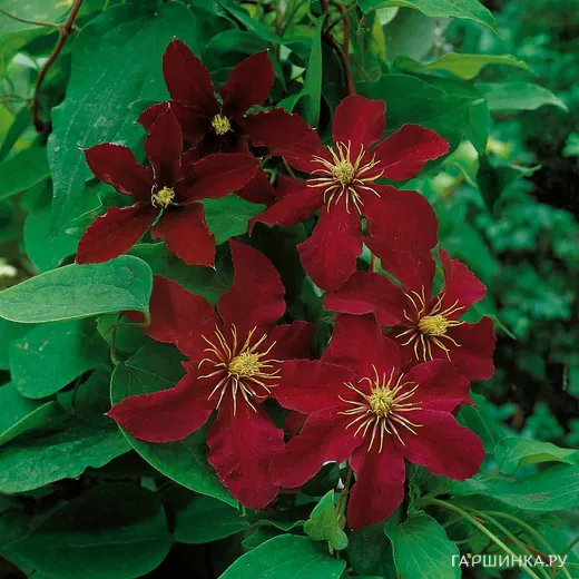 Клематис Ниобе крупноцветковый (3) - представляет собой изысканное многолетнее вьющееся растение, которое станет украшением любого сада. Это растение принадлежит к семейству Лютиковые и известно своими крупными, насыщенно-бордовыми цветками, которые могут достигать в диаметре до 15 см. Цветение начинается в июне и продолжается до сентября, что делает клематис Ниобе идеальным выбором для длительного украшения вашего участка.