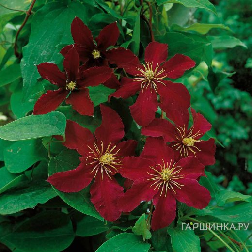 Клематис Ниобе крупноцветковый (3) - представляет собой изысканное многолетнее вьющееся растение, которое станет украшением любого сада. Это растение принадлежит к семейству Лютиковые и известно своими крупными, насыщенно-бордовыми цветками, которые могут достигать в диаметре до 15 см. Цветение начинается в июне и продолжается до сентября, что делает клематис Ниобе идеальным выбором для длительного украшения вашего участка.