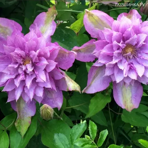 Клематис Протеус крупноцветковый (2) - это умереннорастущий клематис, который формируется довольно высоким. Наиболее распространенная высота растения составляет 2-2,5 метра, при этом диаметр сформированного и ухоженного куста может достигать до 1 метра. Стебли Протеуса являются вьющимися. Диаметр цветков растения в большинстве случаев составляет от 12 до 15 см. Махровые бутоны массово формируются на прошлогодних побегах, а одиночные экземпляры могут наблюдаться на побегах текущего года. Листва клематиса Протеус имеет простую и тройчатую формы. Махровые бутоны красивого растения имеют волнообразные края и не содержат двухцветных сочетаний.