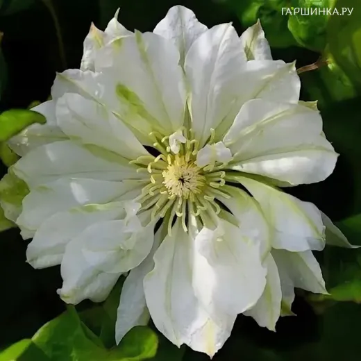 Клематис Юкиокоши махровый (2) - группа обрезки слабая (2), плети 2,5 метра, легко направляются. Цветки махровые, белые, лепестки волнистые, закрученные, 14 см, чашелистики заостренные, нити у тычинок светлые, пыльники кремовые. Цветет на прошлогодних и побегах текущего года, обильно и продолжительно. Зона зимостойкости 4.