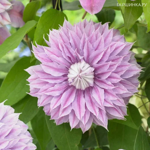 Клематис Жозефина (2) - имеет отличные декоративные качества, неприхотлив в уходе, зимостойкость высокая (зона 4), устойчив к болезням и вредителям. Растение представляет собой сильнорослую лиану высотой около 2,5 метров, с крепкими побегами и густой облиственностью. Листовая пластина округлой, вытянутой формы, матовая, насыщенного зеленого оттенка. Цветение раннее, в две волны, первая – в мае-июне на прошлогодних побегах, вторая в августе-сентябре на молодых. Цветок крупный, до 12 см.в диаметре, розетковидный. Сердцевинка кремового цвета, махровая. Основные 8 лепестков нежно-розовые с темно-фиолетовой полоской посерединке. Клематис великолепно смотрится как в сольной высадке, так и в сочетании с другими декоративными растениями. Посадка рекомендуется в хорошо освещенном солнцем и защищенном от сквозняков месте. Почва плодородная, рыхлая, слабокислая или с нейтральной кислотностью.