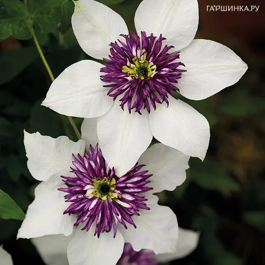 Клематис Зибольда крупноцветковый - группа обрезки сильная (3), плети 4, метра, легко направляются. Цветки немахровые , белые, слегка волнистые, 14 см, чашелистики заостренные, нити у тычинок темные, пыльники фиолетовые. Цветет только на текущих побегах, обильно и продолжительно. Зона зимостойкости 4.