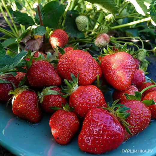 Плоды крупные, удлинённо-конической формы. Средняя масса – 25-30 г. Ягоды одного размера. Цвет – красный, поверхность – гладкая, блестящая.