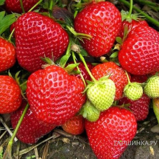 Кожица и мякоть плодов плотные, что позволяет рассматривать сорт как коммерческий, перевозить урожаи на дальние расстояния, длительно хранить. По вкусу ягоды сладкие с легкой кислинкой. Форма плодов удлиненно-коническая, средняя масса 30-40 г.(ягоды первой волны могут быть и более 50 г.), шейка практически отсутствует. Цвет ярко-красный, в стадии технической спелости зона вокруг чашелистика не окрашена. Семянки мелкие.