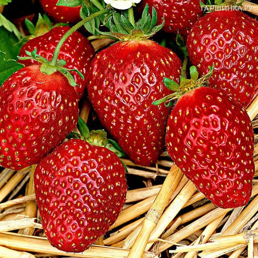 Клубника Корона ремонтантная- Ягоды среднего размера (15-30 г), мясистые, сочные, выровненные по размеру и весу, округло-конической или сердцевидной формы и темно-красного цвета с глянцем. Мякоть оранжево-красного цвета, сладкая, ароматная, без внутренних пустот и стержня. Плодоножка от ягоды отрывается достаточно сложно. Корона не пригодна для длительной транспортировки за счет средней плотности мякоти. Сорт средне-раннего срока созревания, для него свойственны продолжительный период плодоношения и высокий уровень урожайности – до 12 т/га. Особенность плодоношения данной садовой культуры состоит в том, что первый сбор урожая состоит из крупных ягод, а последующие – главным образом из плодов меньшего размера. Корона относится к относительно универсальным сортам клубники: хороша для употребления в свежем виде, приготовления варенья и джемов, но не совсем подходит для заморозки. Кусты небольшие, среднеоблиственные, открытые, с мощными цветоносами и незначительным количеством усов. Листья крупные, зеленого цвета с блеском, вогнутые, над ними расположены цветоносы. Побеги высокие, средней толщины, способны выдерживать ягоду на весу. Корона отличается хорошей зимостойкостью, и умеренной засухоустойчивостью. Она устойчива ко многим грибковым заболеваниям, но крайне уязвима к белой пятнистости и красной корневой гнили.