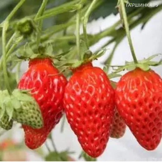 Правильная агротехника обеспечивает урожай плодов, выровненных по размеру, без измельчения к концу плодоношения. Форма ягоды – коническая, в виде сердечка. Мякоть клубники Кимберли плотная, без пустот. Семена углублены в глянцевую, красно-оранжевую поверхность. Плоды содержат много сахаров – до 10%. Вкус гармонично сбалансирован приятной кислинкой. Средний вес спелых плодов клубники Кимберли составляет около 20 г, при благоприятных условиях достигает 50 г.