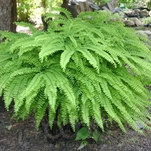 Кочедыжник женский Адиантум Стоповидный – многолетнее тенелюбивое растение. Высота 60 см. Очень эффектный папоротник. Листья его светло-зеленые, глянцевые, веерообразные, перисторассеченные, сидят на тонком черном черешке. Стебель гибкий, по форме напоминает подкову.