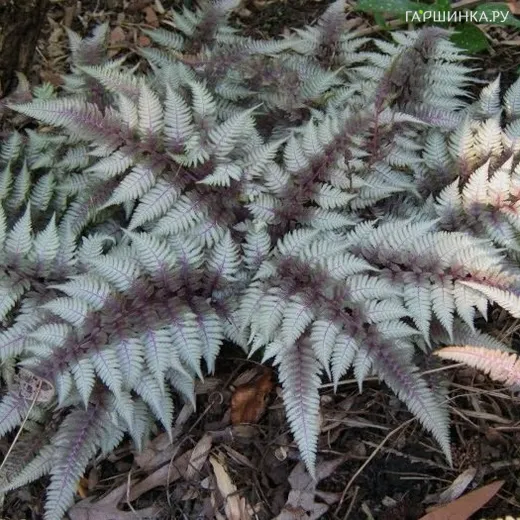 Кочедыжник (папоротник) Ред Бьюти ниппонский – многолетнее тенелюбивое растение. Высота взрослого растения: 50 см. Жилки на вайях свекольно-бордового цвета, а цвет листвы переходит из бежево-серебристого (у основания) в зеленый (к кончикам). Ценится за необыкновенную листву с металлическим оловянным блеском и контрастными красными прожилками.