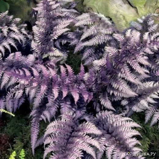 Кочедыжник (Папоротник) ниппонский Урсула Ред – многолетнее тенелюбивое растение. Высота растения 45-50 см. Серебристо серой окраски, центральная часть красно-пурпурно-зеленоватого цвета, вазообразная форма. Весной появляется позже других кочедыжников.