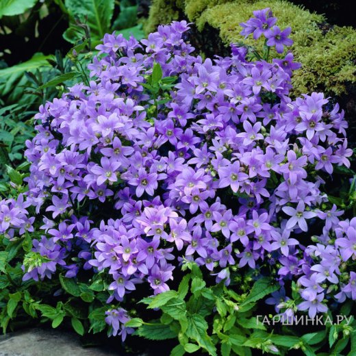 Колокольчик молочн. Border Blues - травянистое растение семейства Колокольчиковые. Высота до 100 см. Стебли мощные. Листья светло-зеленые, опушенные. Соцветие метельчатое. Многочисленные цветки звёздчатые, тёмно-синего цвета с белым центром. Цветки крупные 5-7 см, период цветения продолжительный с июня и до середины августа. К концу цветения размер цветка мельчает.
