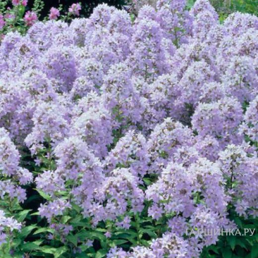 Размножение Колокольчик молочноцветковый Пуфф (Campanula lactiflora Pouffe). Многолетние колокольчики размножают семенами, черенками и делением куста. Семена колокольчика высевают в открытый грунт под зиму. Черенкование проводят по общепринятой технологии, черенки нарезают в марте-апреле. Кусты колокольчиков делят на 3-5 год жизни, весной или в конце лета так, чтобы на каждой деленке были развитые почки и корешки.