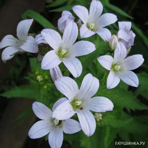Колокольчик молочноцветковый Вайт Пуфф - это изысканное многолетнее растение, которое станет украшением любого сада благодаря своим уникальным декоративным свойствам. Это травянистое растение отличается компактной формой и аккуратными габаритами, достигая в высоту около 40-50 см. Его побеги прямостоячие, без шипов и колючек, что делает его безопасным для использования в ландшафтном дизайне.