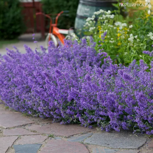 Котовник Фассена Джуниор Уолкер - легко можно спутать с лавандой. Многолетний и компактный куст, высотой 35-40 см, шириной 80-90 см. Цветки лавандово-голубые, в метёлках. Листья большие, сине-зелёные, очень ароматные. Этот вид котовника относится к очень обильно и продолжительно цветущим. Цветение продолжительное: с мая по сентябрь. Предпочитает сухую почву и отлично чувствует себя на солнечном месте. Превосходное растение для клумб, бордюров, рокариев. Все его части ароматны. Подходит для выращивания в горшках и других емкостях, озеленения крыш.