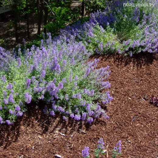 Котовник Фассена Дропмор - имеет мягкую, серо-зеленую, ароматную листву, достигающую 30-90 см в высоту и 90-120 см в ширину. Мелкие листья привлекают пчел и бабочек. Это многолетнее растение летом цветет лавандово-голубыми цветами. Котовник можно сажать на солнце или в полутени в хорошо дренированной, песчаной, сухой почве. После укоренения растение засухоустойчиво. Для стимулирования нового цветения рекомендуется обрезать отцветшие соцветия.