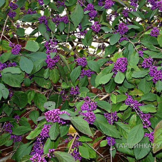 Красивоплодник Бодиньера Профьюжн - это декоративное растение, которое привлекает внимание своими яркими и необычными плодами. Это кустарник, относящийся к семейству Вербеновые. Жизненная форма растения – листопадный кустарник, который достигает высоты от 1,5 до 3 метров, с раскидистой кроной и прямостоячими побегами. Побеги гладкие, без шипов и колючек, что делает растение безопасным для использования в ландшафтном дизайне.