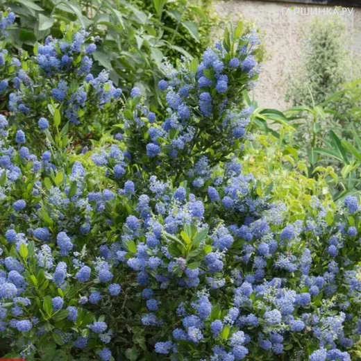 Краснокоренник Блю Маунд - медленнорастущий кустарник с цветками синего цвета. Они сформированы в округлых соцветиях 3-4 см в длину. Цветение длится с начала июня и обычно продолжаются около месяца. С каждым годом цветков так много, что они полностью покрывают растение. Нуждается в плодородной, проницаемой почве, достаточно влажной в течение первого года и предпочтительно слегка кислой. На зиму необходимо обеспечить толстый слой мульчи вокруг приствольного круга. Для надежной перезимовки рекомендуется выбрать место, которое будет на солнце летом, но затенено зимой, чтобы растению не вредило длительное зимнее солнце в сочетании с морозом.