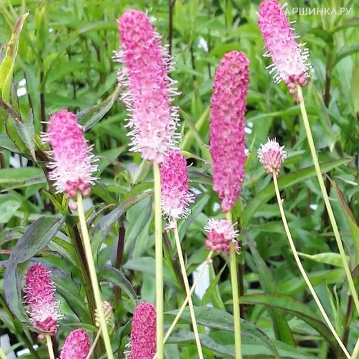 Кровохлебка Пинк Танна - представляет собой высокое многолетнее растение с непарноперистыми листочками. Над ними развиваются розово-сиреневые соцветия, по форме напоминающие удлиненные шишки.Максимальная высота взрослого растения – 120 сантиметров.