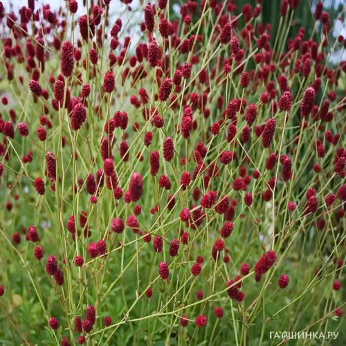 Кровохлебка Битлвингз - Образует ажурный куст с крепкими стеблями высотой до 100 см, на концах которых располагаются красно-коричневые соцветия продолговатой формы. Растение имеет необыкновенно воздушный, легкий облик. Прикорневые листья крупные, непарноперистые образуют красивую розетку. Цветение продолжительное – в июле-августе.