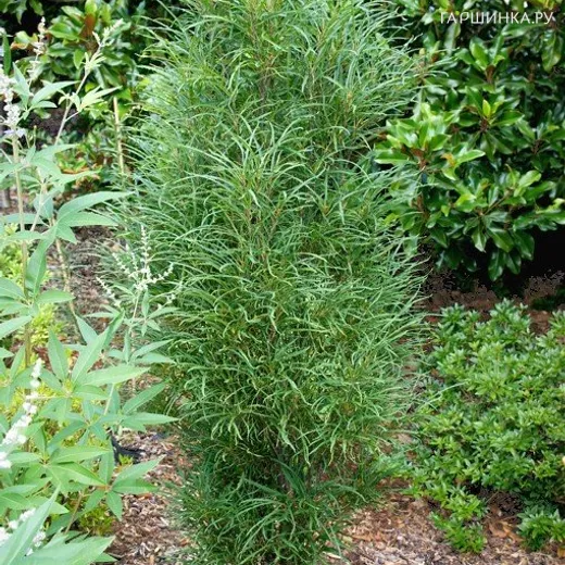 Крушина ломкая Файн Лайн - Кустарник колонновидной формы. Высота до 200 см. Диаметр куста взрослого растения: 100 см. Легкий, прозрачный, изящный. Листья очередные, удлиненно-эллиптические, цельнокрайние, зеленые, блестящие. Листовая пластинка только вокруг главной жилки. Цветёт в июне мелкими беловато-желтыми цветками, расплоложенными в пазухах листьев. Засухоустойчива, хорошо переносит стрижку и формовку. Зимостойка, подмерзать начинает только при температуре за -40°С.