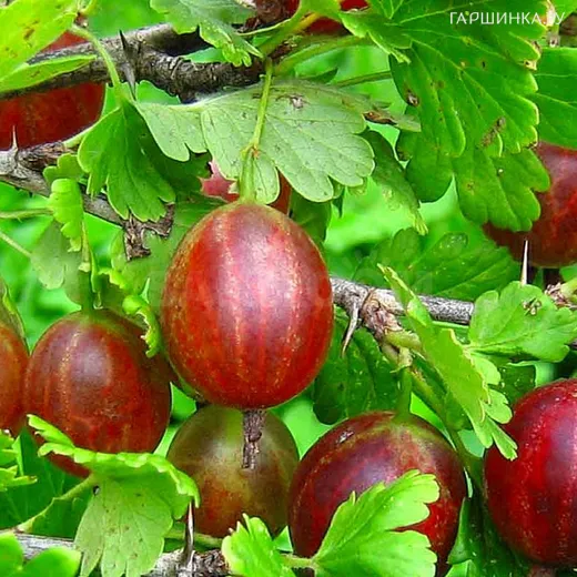 Крыжовник Майский герцог - Куст средней величины, слабораскидистый, побеги довольно толстые, в среднем количестве, с поникающими вершинами. Шипы на побегах одинарные, тонкие. Сорт размножается отводками и зелеными черенками. Зимостойкость удовлетворительная. Время созревания раннее. Урожайность высокая, ежегодная. Первый урожай сорт дает на 3-й год по посадке. И пору нормального плодоношения вступает на 6—7-й год. Лучше плодоносит при условии хорошего ухода и внесения удобрении. Отзывчив на подкормки. Ягоды крупные (до 15 г), красные, округлой, удлиненной, реже яйцевидной формы. Поверхность почти без всякого опушения.
