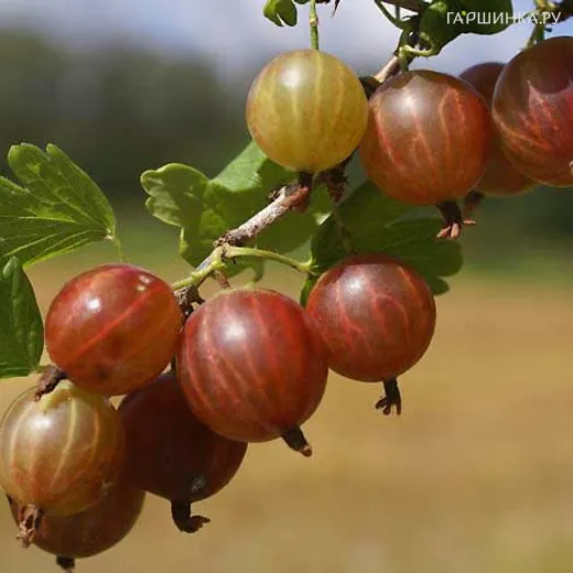Крыжовник Раволт слабошипованный - Ягоды средне-крупные (4-5 грамм), округлые или округло-овальные, красные или темно-розовые с заметными более светлыми полосами. Кожица средней толщины, прочная, слабо опушенная. Мякоть жидковатая, с темными косточками. Вкус сладкий с легкой кислинкой. Транспортабельность свежих ягод хорошая. Пригоден в качестве десерта и для технической переработки.