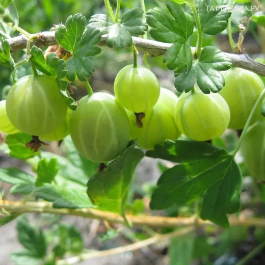 Крыжовник Берилл крупноплодный зеленый - это уникальный сорт, который привлекает внимание садоводов своими ботаническими особенностями и высокой урожайностью. Это растение относится к многолетним кустарникам и отличается компактной формой роста, достигая высоты до 1,2 метра. Кусты имеют раскидистую структуру с умеренной густотой побегов, что облегчает уход и сбор урожая. Побеги крыжовника Берилл умеренно колючие, что снижает риск повреждений при сборе плодов.