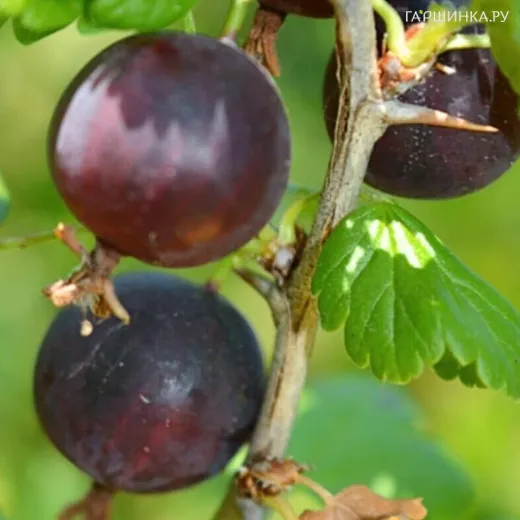 Крыжовник Черносливовый слабошипованный. Среднеспелый, среднерослый сорт. Куст прямостоячий, слабораскидистый, ошипованность слабая, побеги светло-зеленые, серо-бурые, толстые, шипы одиночные. Лист трех-пяти лопастной, округлый, с глубокими вырезами, крупный, темно-зеленый, зубчики тупые, полуглянцевые, опушения нет. Ягода овальная, грушевидная, бордовая, в фазе спелости черная, насыщенная, 5 г, опушения нет. Мякоть густая, сочная, кисло-сладкая, крахмалистая, ароматная, содержание аскорбиновой кислоты и витаминов высокое. Урожайность средняя, товарность высокая.