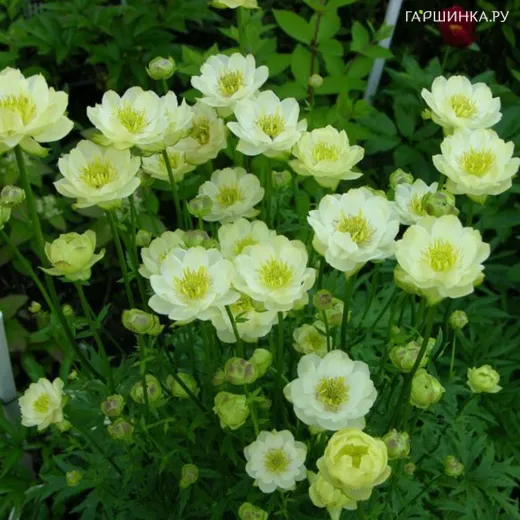 Купальница Чеддер - Цветки полумахровые кремово-жёлтые. Формирует куст высотой 50-70 см. Цветки крупные, до 5 см в диаметре. Цветет май-июнь, повторно август-сентябрь. Устойчива к болезням, зимостойка (зона зимостойкости 4 (-34 / -29 °C).