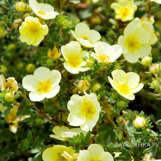 Лапчатка Катерина Лайкс кустарниковая - Невысокий кустарник с округлой кроной, высота которого не превышает 1 метр, а диаметр – 1,2 метра. Годовой прирост – 20 сантиметров в высоту и 25 сантиметров в ширину.
