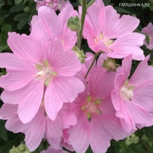 Лаватера тюрингенская - неприхотливое многолетнее, сильноветвистое растение до 200 см высотой с округлыми или сердцевидными, серо-зелеными листьями. Цветки крупные, розовые, одиночные, до 10 см в диаметре, расположены в пазухах листьев. Цветет с июля до осени.