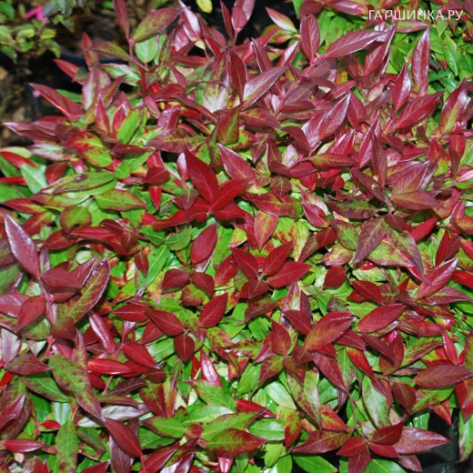 Леукотоэ Кейски Роял Руби - Вечнозелёный распростёртый кустарник, к 10-ти годам высота 60 см, ширина 100 см. Листья кожистые ланцетные глянцевые. Летом они зелёные с бордово-красными оттенками по краям, осенью полностью меняются на тёмно-бордово-красные и сохраняют цвет до весны (до новых листьев). Цветки маленькие кремово-белые колокольчатые, в кистях (похожи на цветки пиериса). Цветение в мае-июне. Место полутенистое или тенистое.