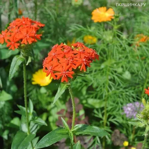 Лихнис (Зорька) халцедонский - высота куста сорта может достигать 80 – 100 см, а диаметр соцветия – до 10 см. Особенностью лихниса халцедонского также являются прямостоячие стебли, которые покрыты яйцевидными или ланцетными листами. Данный сорт довольно-таки вынослив к холоду. Может легко переносить засуху. Поэтому не требует тщательного ухода, и поливать растение достаточно хотя бы один раз в неделю.