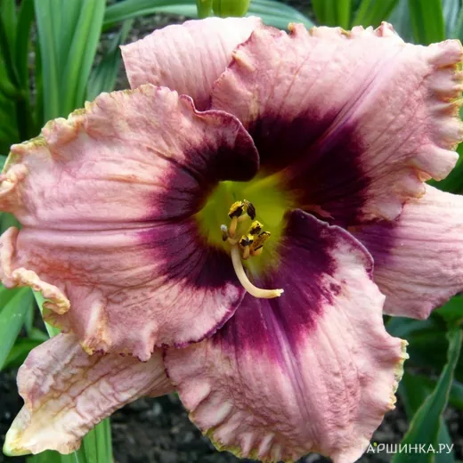 Цветы Даринг Десепшн привлекают внимание своей необычной окраской и формой. Они крупные, диаметром до 15 см, с волнистыми лепестками, окрашенными в нежные розово-фиолетовые тона с контрастным тёмным глазком и светлой каймой. Цветение начинается в июне и продолжается до августа, обеспечивая длительный период декоративности. Лилейник не образует плодов и не требует опылителей, что упрощает его выращивание.