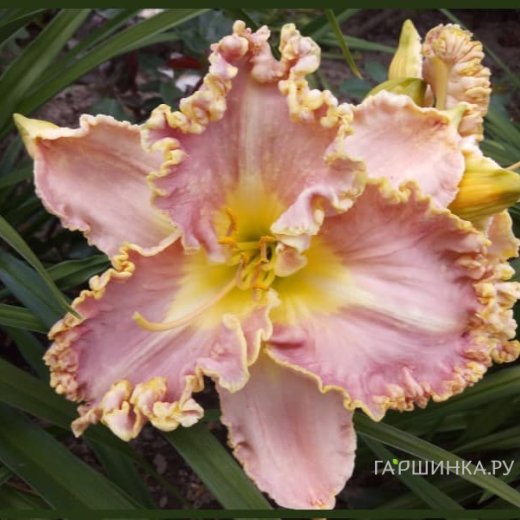 Лилейник Lavender TuTu - высота растения 65 см, цветок лавандовый с золотистой каймой и желтым горлом, гофрированный, повторное цветение, эффектный. Цветение июль-август.