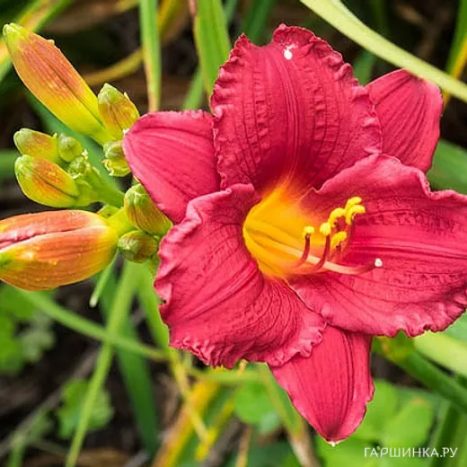 Лилейник Литл Бизнес– травянистый корневищный многолетник. Высота куста 45 см, диаметр цветка 7 см. Цветы малиново-красные с зеленым горлом, гофрированные, ароматные, с продолжительным цветением.