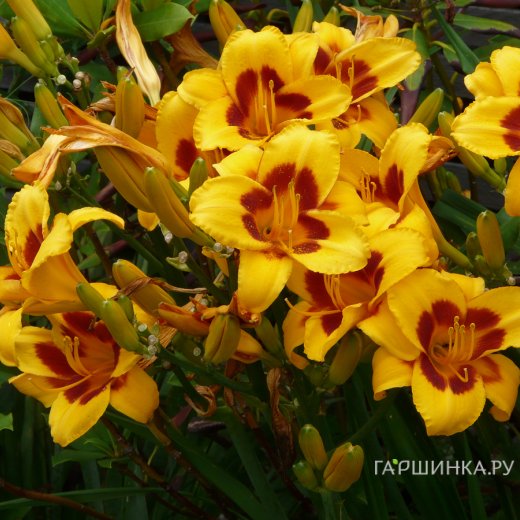 Лилейник Блэк Айд Сюзан– травянистый корневищный многолетник. Высота растения - 66 см, диаметр цветка - 14 см. Жёлтый с красно-коричневым глазом. Слегка гофрированные внутренние лепестки. Тетраплоид.