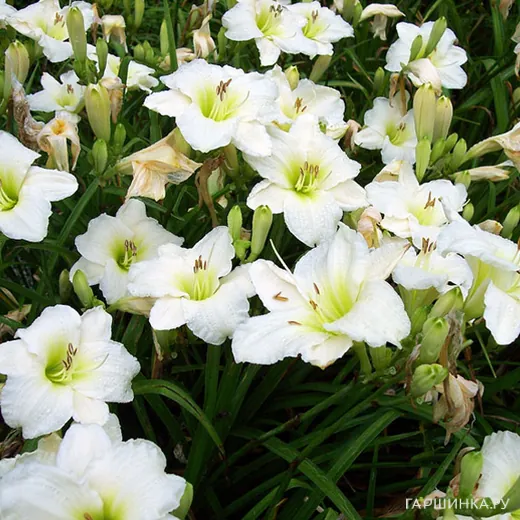Лилейник Джентл Шеферд– травянистый корневищный многолетник. Высота растений 65 см. Цветки в диаметре 12,5 см белоснежные, горло зеленоватое, лепестки гофрированные, плотные. Полувечнозеленый, дневной диплоид, средний(июль-август).