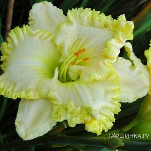Лилейник Грин Мистик– травянистый корневищный многолетник. Высота до 60 см. Диаметр до 15 см. Имеет нежный кремовый оттенок с лимонными гофрированными краями и горловиной зелено-желтого цвета. Повторноцветущий.