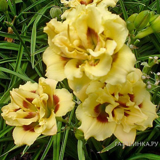Лилейник Литл Мисс Манерс– травянистый корневищный многолетник. Высота растения 40 см. Цветок 10 см. Махровый, кремово-жёлтый с бордовым глазком и зелёным горлом, повторное цветение. Цветение июнь-июль, повторное.